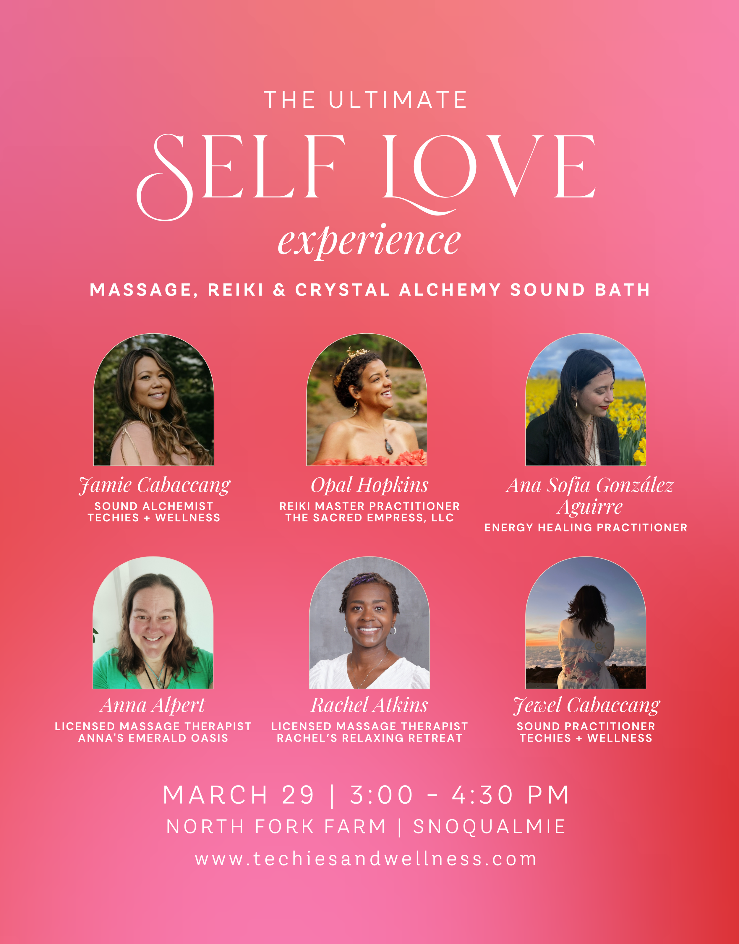 Come solo, or share this experience with others, set in a beautiful venue where every detail is curated to support your well-being. Plus, when you bring someone with you, you'll each receive a special discount. This gathering is for everyone, celebrating self-love as the foundation of all meaningful connections. Together, let’s honor love that begins within and shines brightly into the world around us.